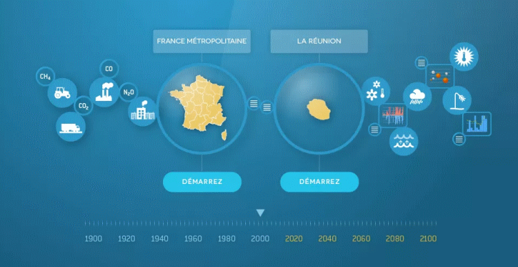27/02/2020Depuis de nombreuses années, les travaux de la communauté scientifique internationale indiquent qu'un réchauffement du climat à l'échelle globale est en cours et qu'il se poursuivra pendant plusieurs décennies au moins. Il peut toutefois sembler difficile de comprendre les enjeux de ces changements et d'en mesurer concrètement les impacts. Pour offrir à chacun, citoyen, journaliste, décideur, l'opportunité d'en prendre la mesure, Météo-France propose ClimatHD, un outil simple, accessible à tous, offrant une vision intégrée des évolutions du climat et de ses impacts depuis le début des mesures et jusqu'à l'horizon 2100, à l'échelle du pays et de ses régions. Récemment, il a été enrichi d'une rubrique dédiée à l'évolution du climat sur l'île de La Réunion.