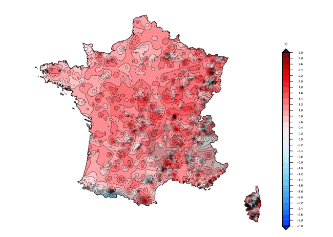 Au 3e rang des années les plus chaudes en France depuis le début du XXe siècle.