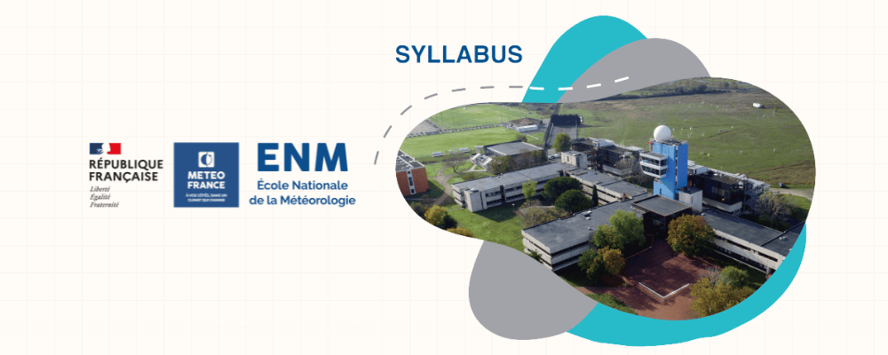 Objectif de la formation (durée 3 ans) l’ENM forme des ingénieurs, scientifiques de haut niveau dans le domaine des sciences météo-climatiques. La formation est organisée autour de sept activités métiers, déclinées en acquis de l’apprentissage.